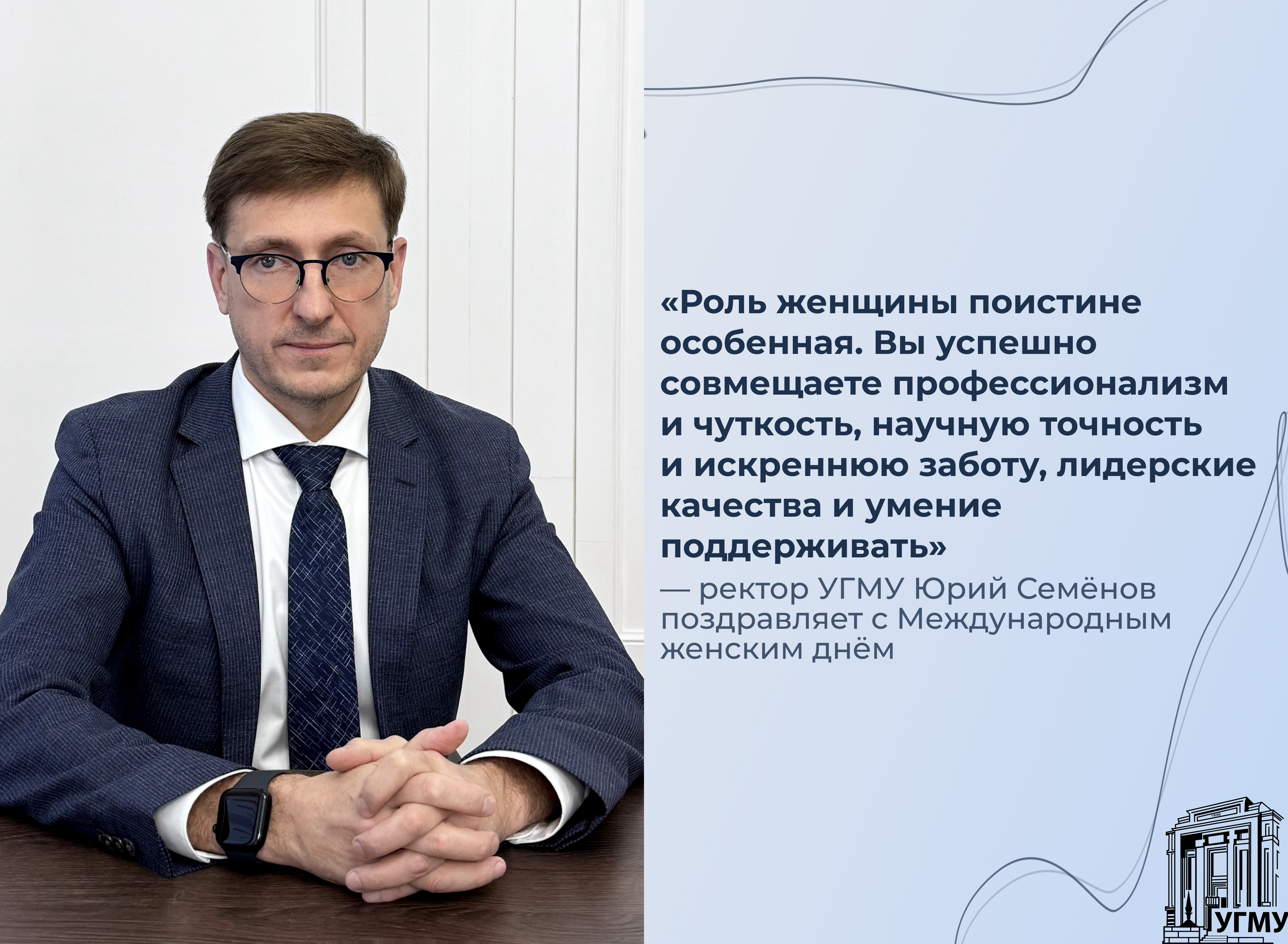Поздравление ректора УГМУ Юрия Семёнова с Международным женским днём