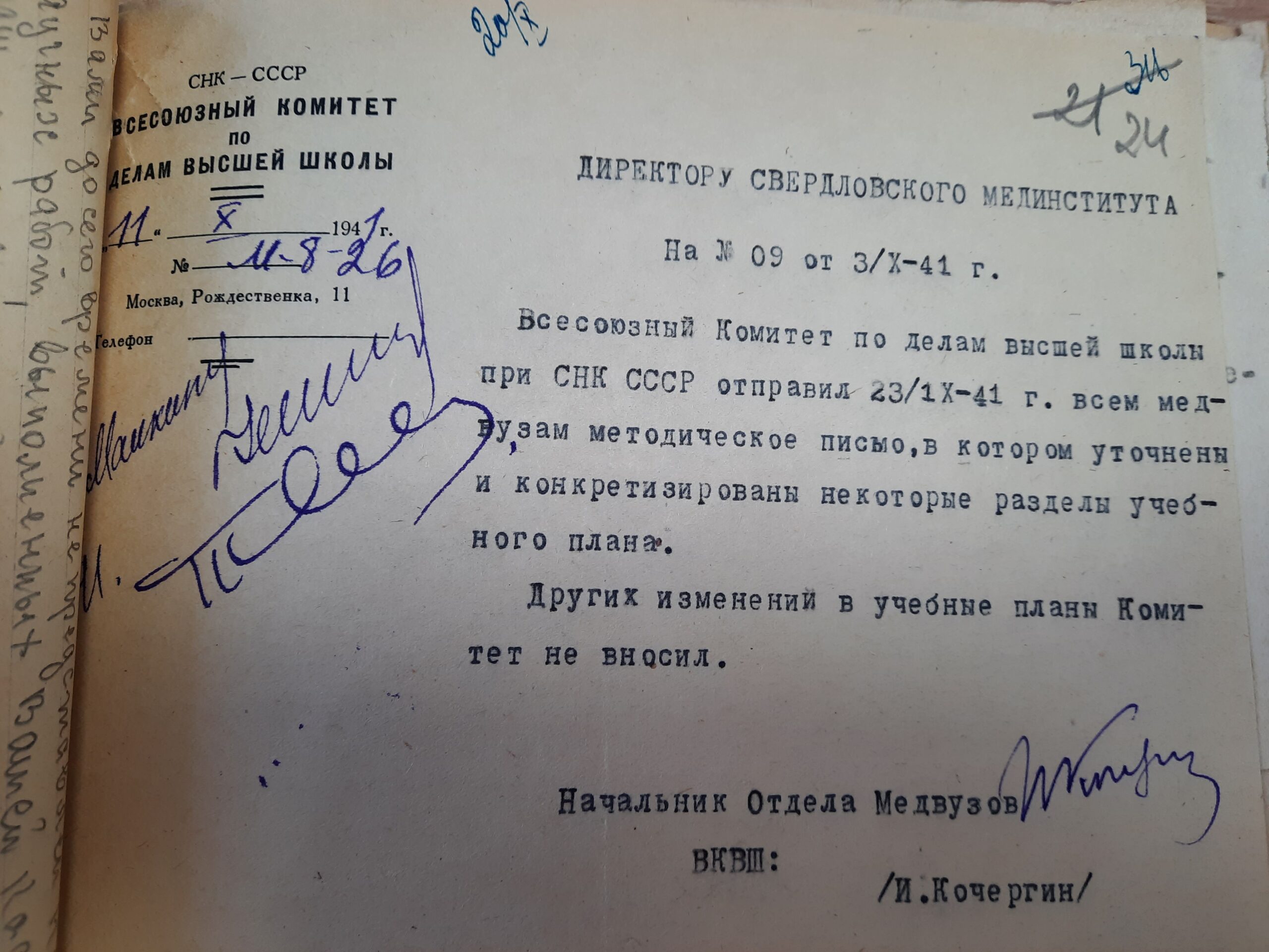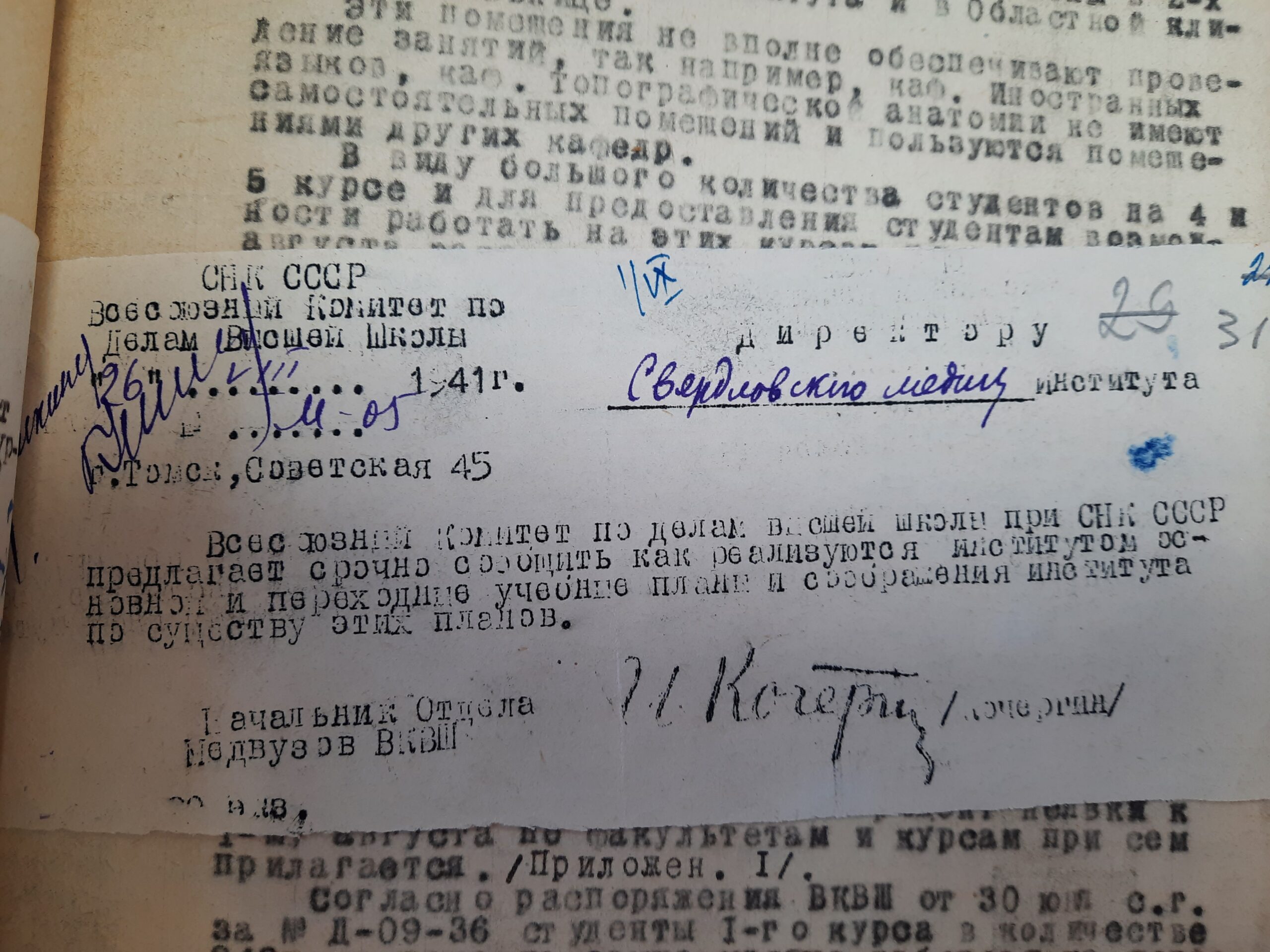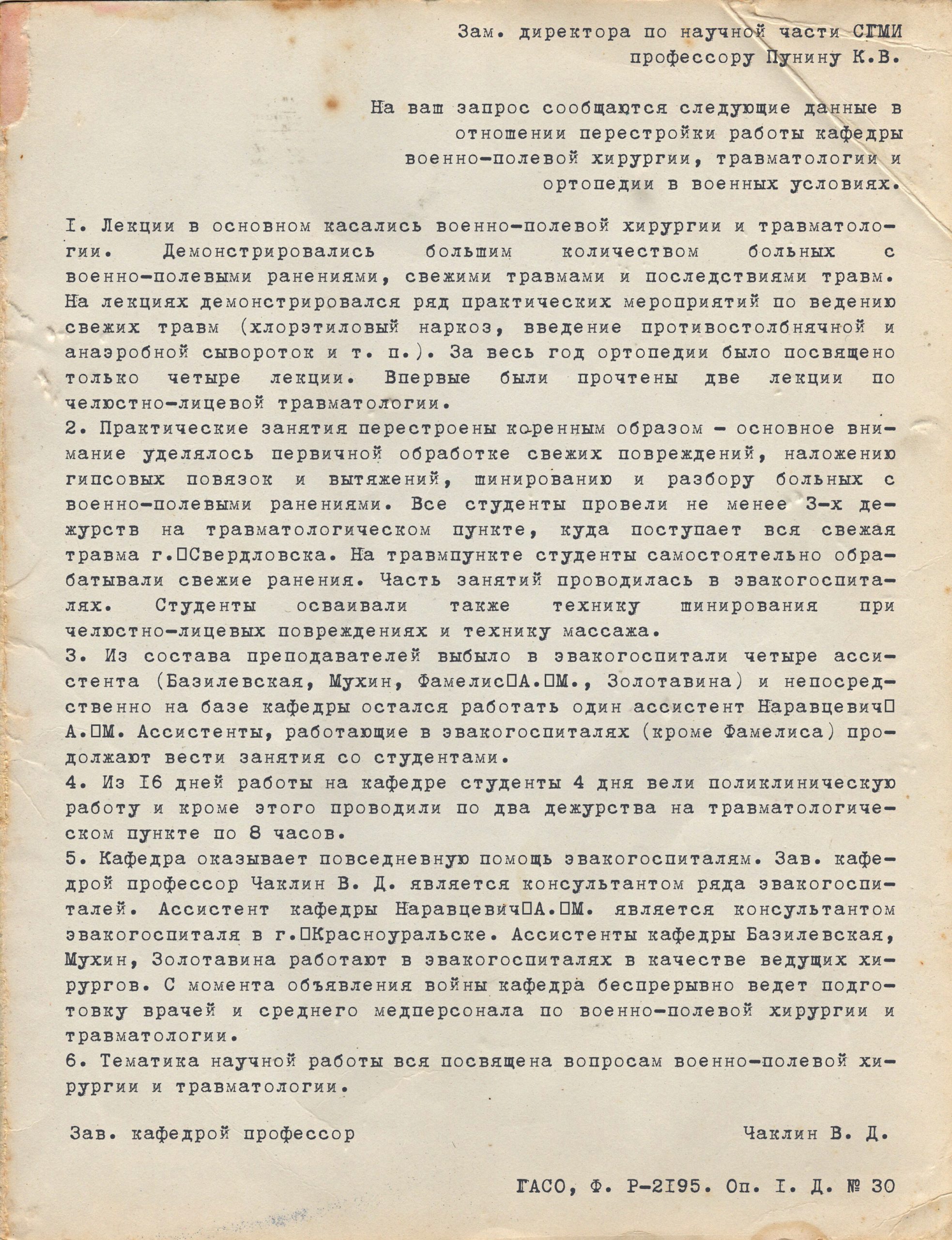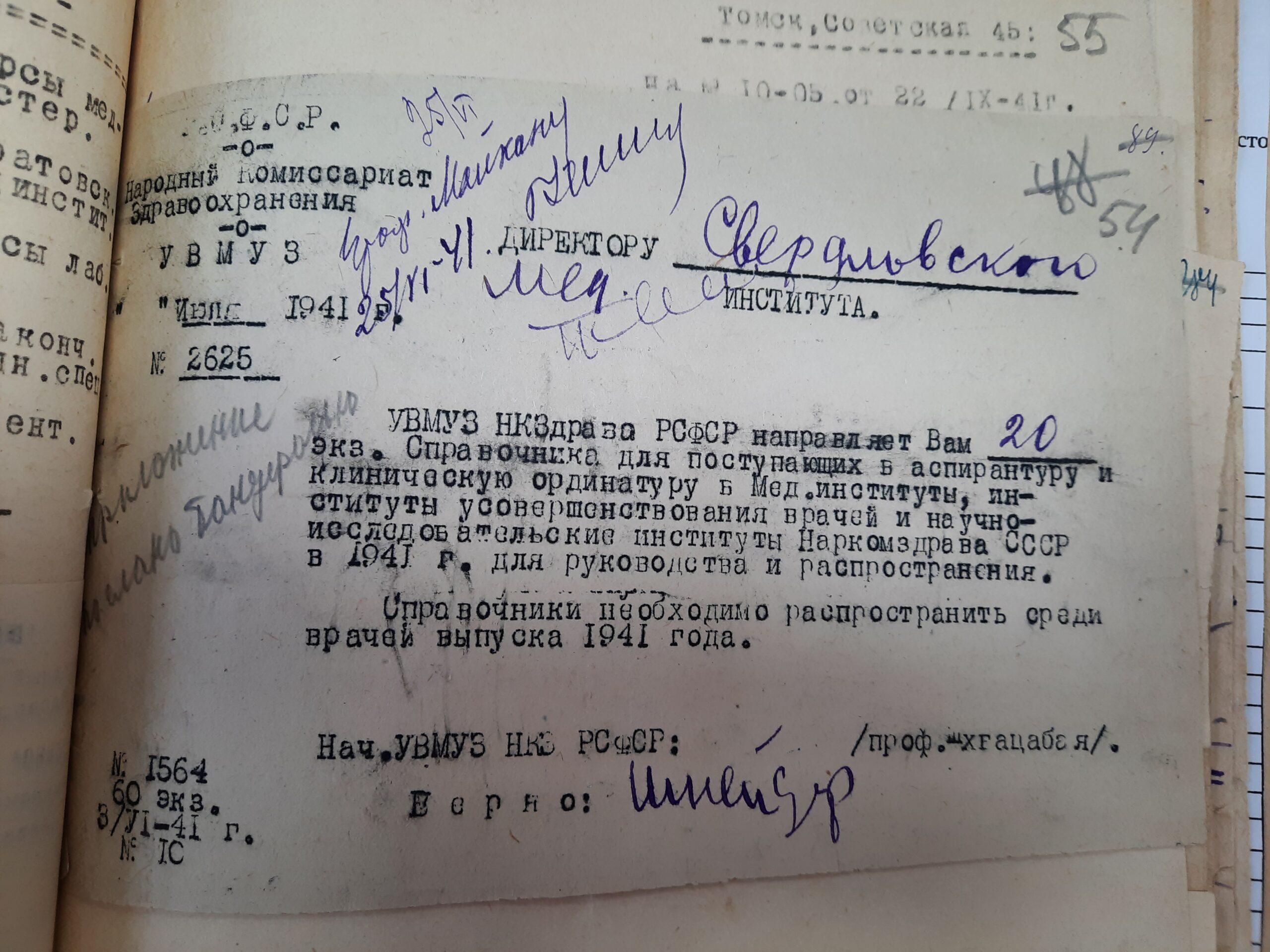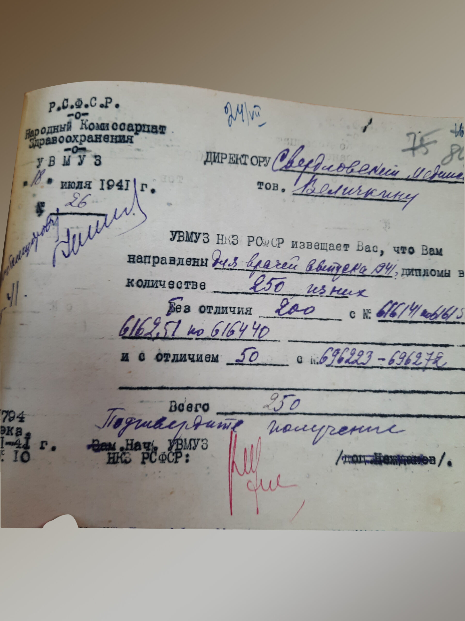 В 1941 году директором Свердловского Медицинского института был Величкин Владимир Иванович.