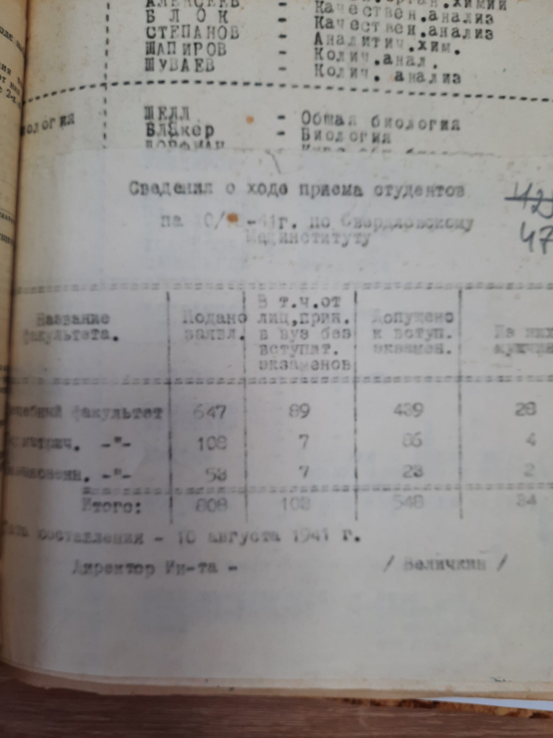 Плановый набор студентов 1941-1942 уч гг
