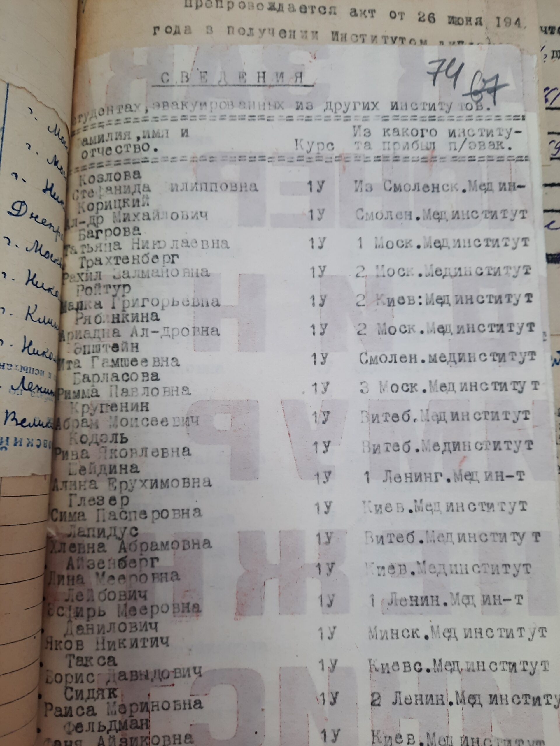 Весной 1941 г. до начала войны Свердловский медицинский институт готовился к приему на 1 курс.
