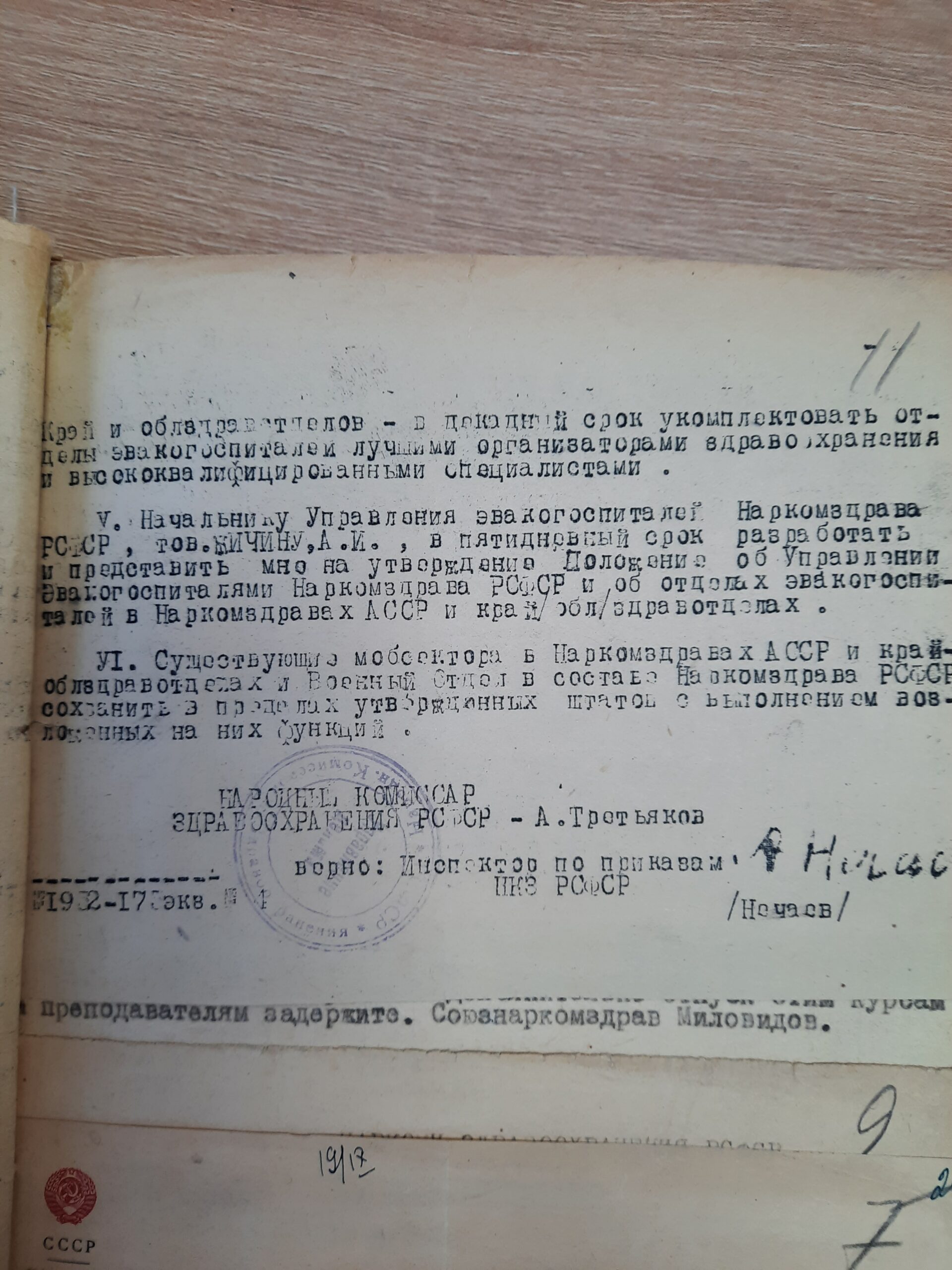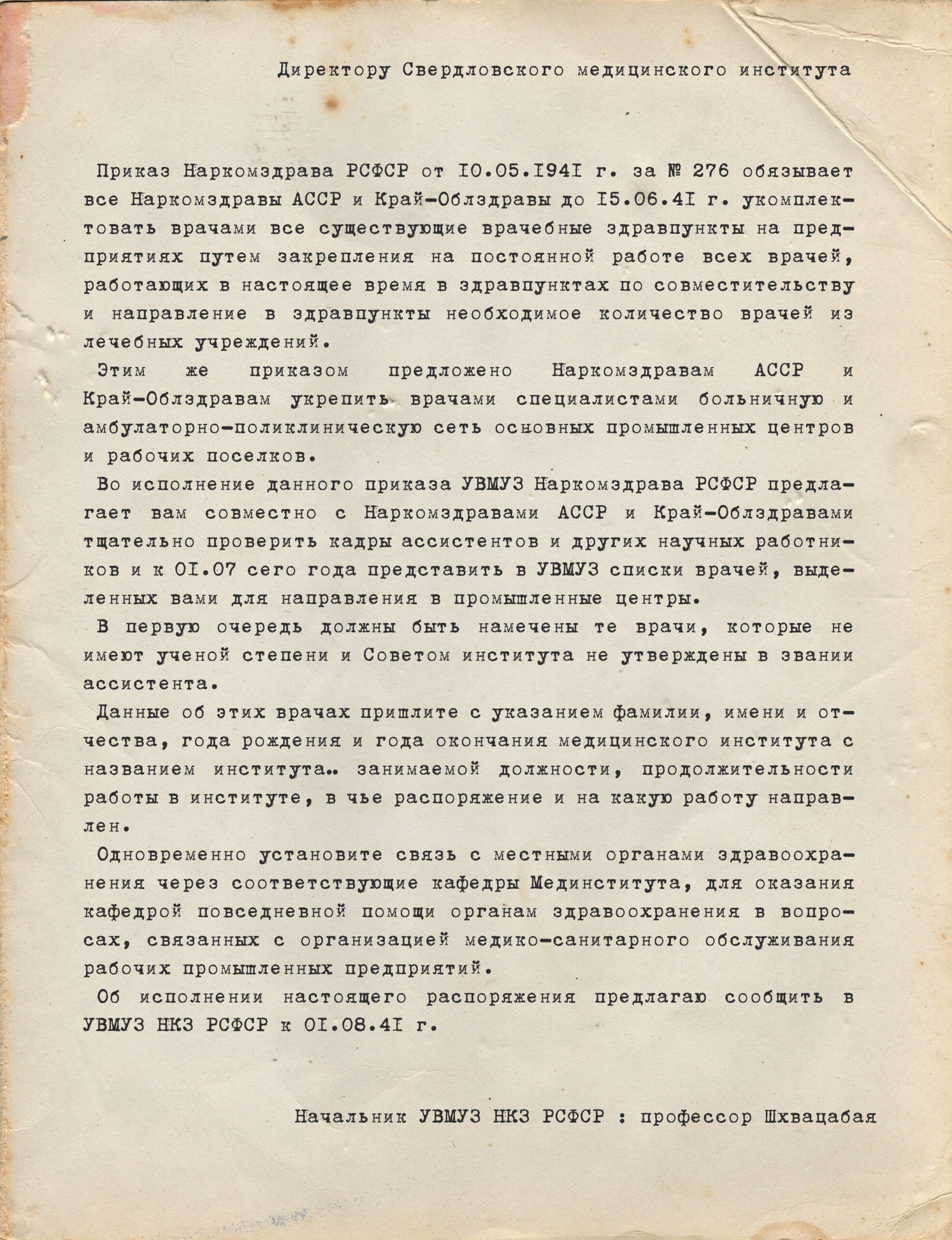 Из распоряжения Народного комиссариата здравоохранения от 10.06.1941 г.