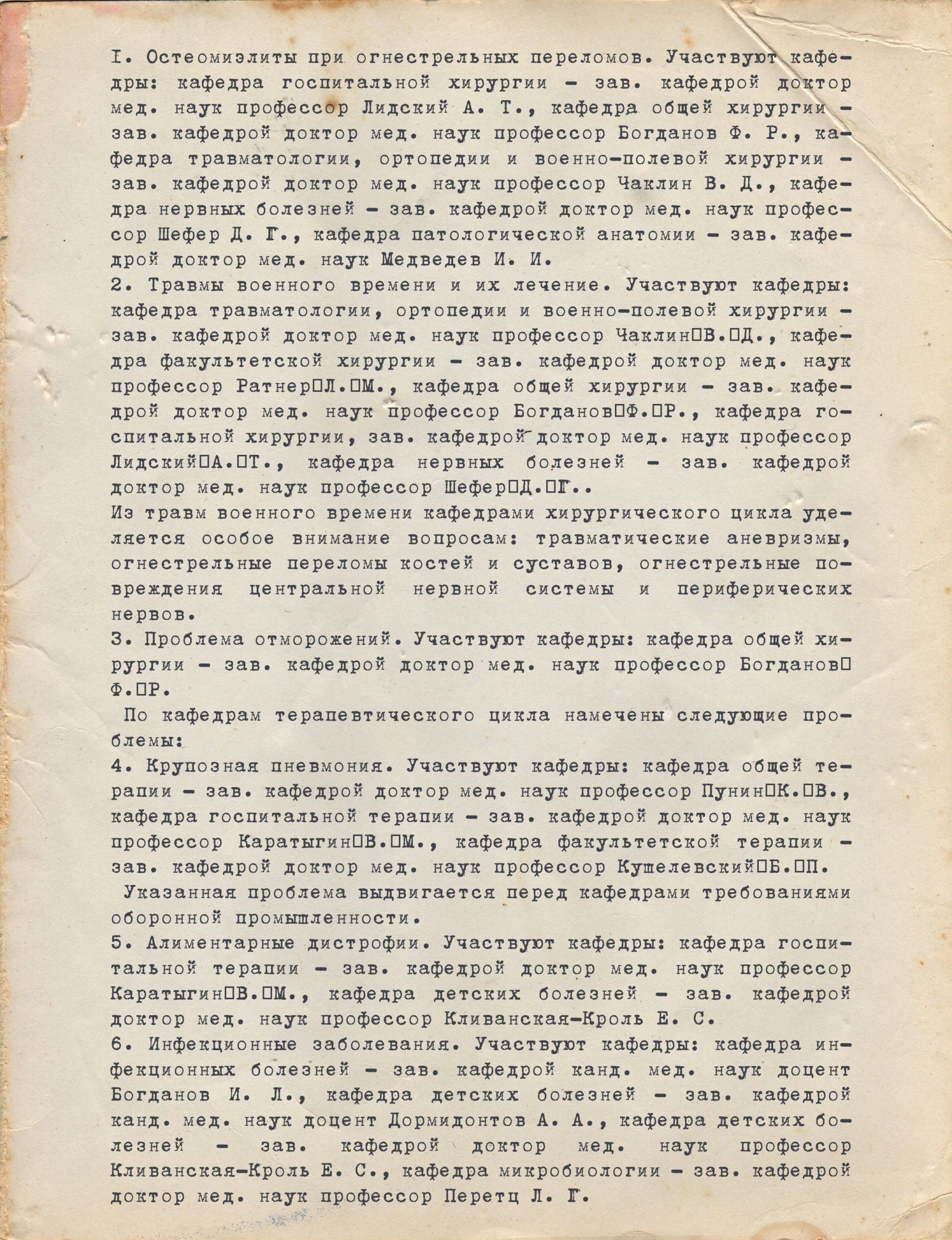 системы (5 кафедр). Кроме того, по просьбе Облздравотдела ученые института выполняли работу по апробации заменителей ваты, марли, лигнина, дефицитных медикаментов.
