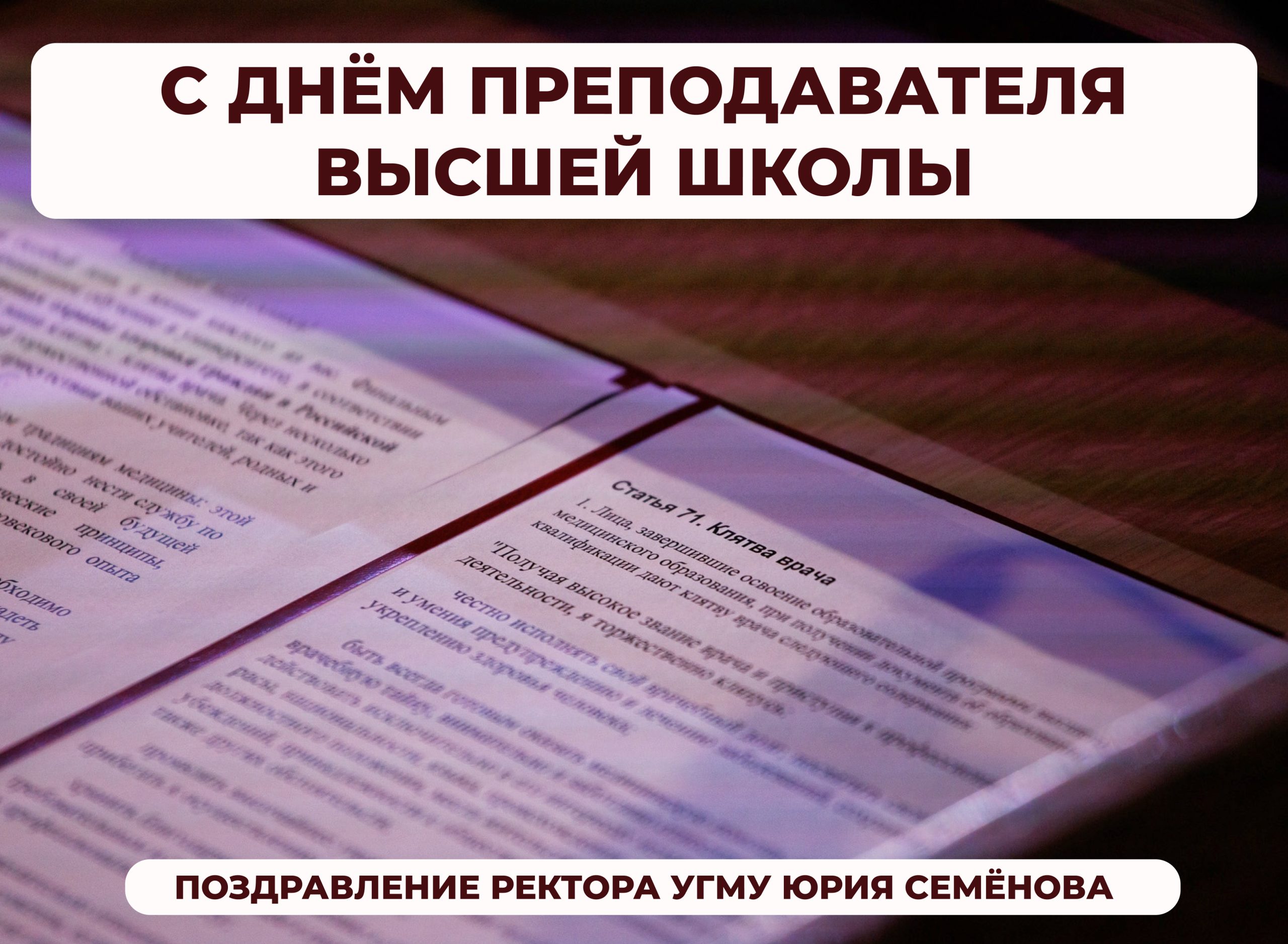 Ректор УГМУ Юрий Семёнов поздравляет коллег и студентов с наступающим Новым годом