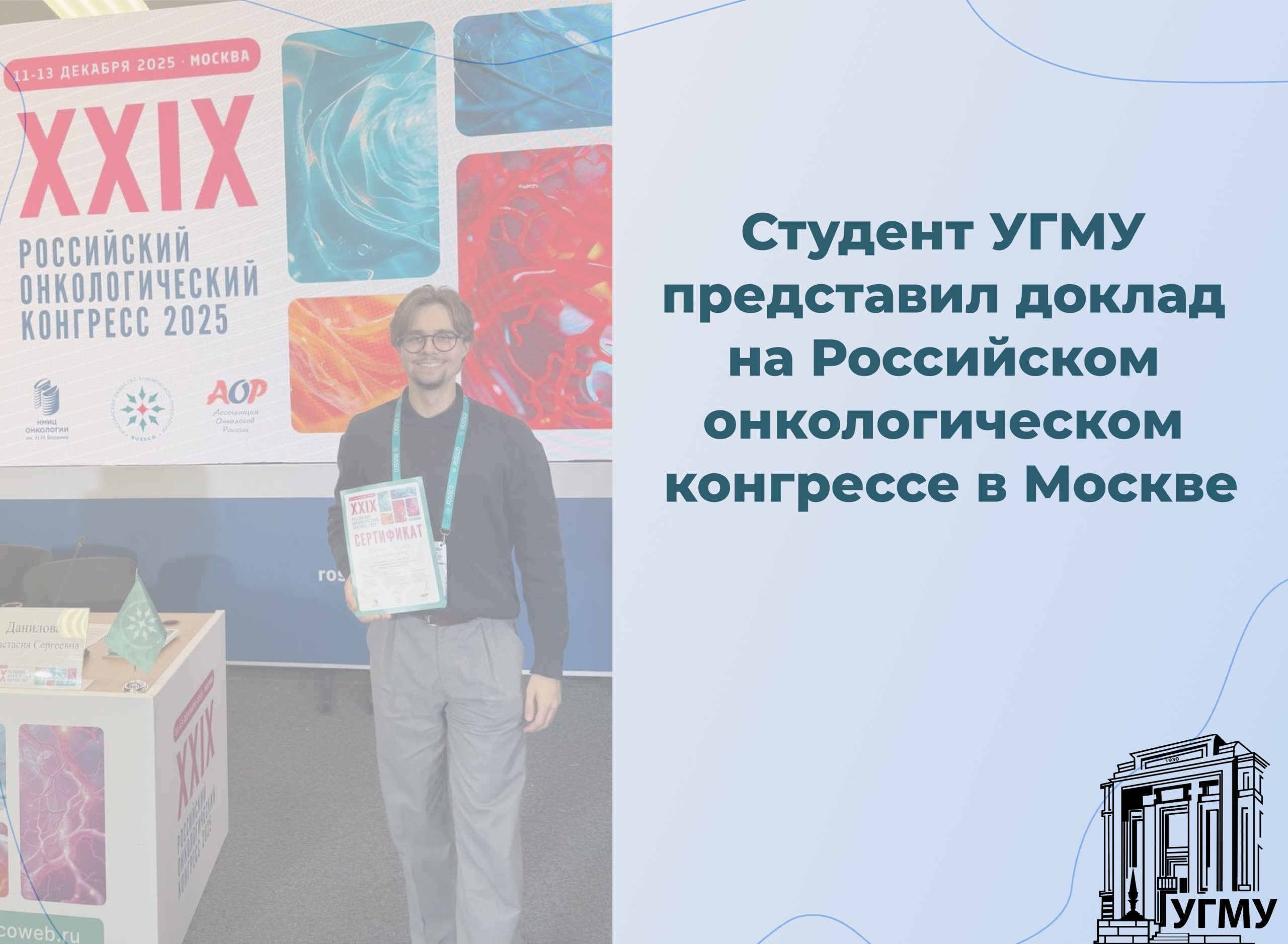 Студент УГМУ представил доклад на Российском онкологическом конгрессе в Москве