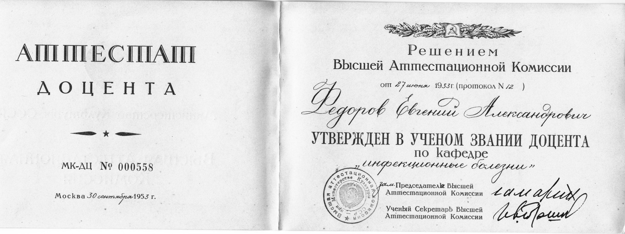 Фёдоров Евгений Александрович — исполнял обязанности заведующего кафедрой инфекционных болезней с 1952 по 1956 гг.