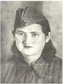 Выпускница СГМИ 1941 Мобилизована в состав Северо-западного фронта, в апреле 1943 – после тяжелого ранения служба в составе Уральского Военно -санитарного отделения