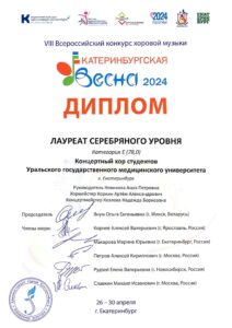 Хоровой фестиваль медицинских вузов «С музыкой в Сердце» (РНИМУ им. Н. И. Пирогова) — в 2024 году коллектив стал победителем фестиваля и получил дипломы за лучшее исполнение произведений Сергея Рахманинова