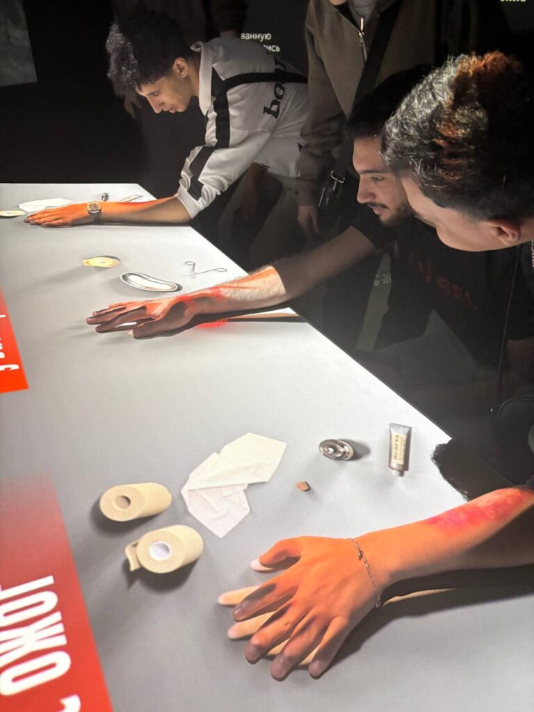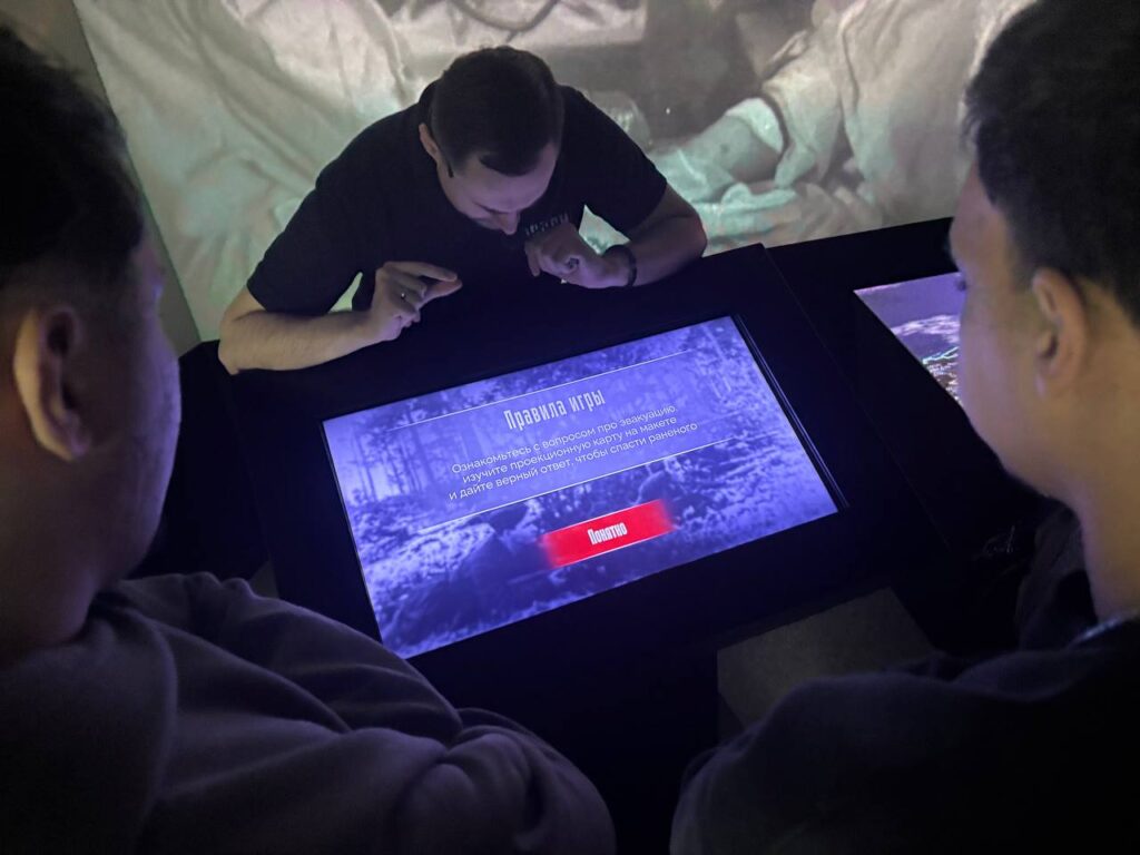 Иностранные обучающиеся не только ознакомились с подлинными ппредметами военного времени, но и с помощью мультимедийных технологий смогли лично прочувствовать трудности и ответственность работы военного хирурга. Интерактивная зона позволила им прикоснуться к истории, сидя за партами, сохранившими память о фронтовых госпиталях.