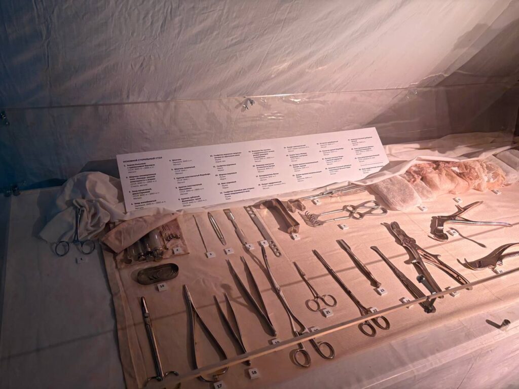 Выставка, развернутая на площади более 1000 квадратных метров, посвящена самоотверженному подвигу военных медиков в годы Великой Отечественной войны. Каждый фрагмент экспозиции — это живое свидетельство мужества, высокой профессиональной ответственности и глубокой человечности врачей, санитаров и медсестер, спасавших жизни в тяжелейших условиях фронта.