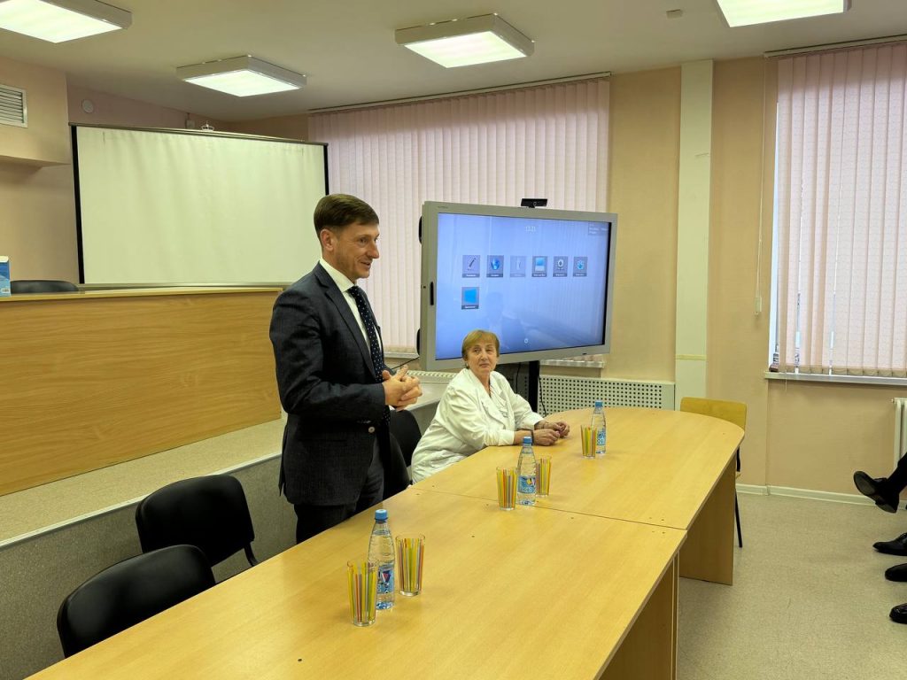 В рамках визита состоялась деловая встреча с руководством Городской клинической больницы № 40. Участниками стали исполняющий обязанности главного врача Михаил Налесник, а также его заместители: по хирургическим вопросам Евгений Нишневич, терапевтическому направлению Марина Кочергина, инфекционным заболеваниям Арменуи Овчинникова и другие представители медицинского сообщества.