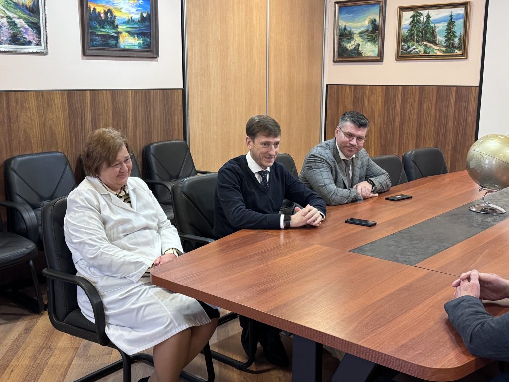 На территории больницы состоялась деловая встреча с главным врачом Владимиром Кухаркиным, который подчеркнул продуктивный и конструктивный характер многолетнего сотрудничества с университетом. «Университет и больница делают одно общее дело — готовят высококвалифицированных врачей, сочетая обучение с ежедневной практикой», — отметил Владимир Николаевич.