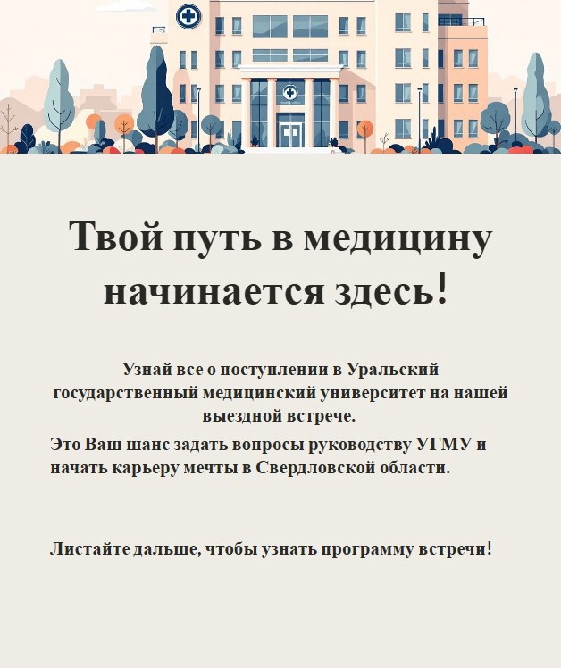 Уральский государственный медицинский университет приглашает обучающихся общеобразовательных организаций Свердловской области принять участие в выездных информационно-профориентационных мероприятиях.
