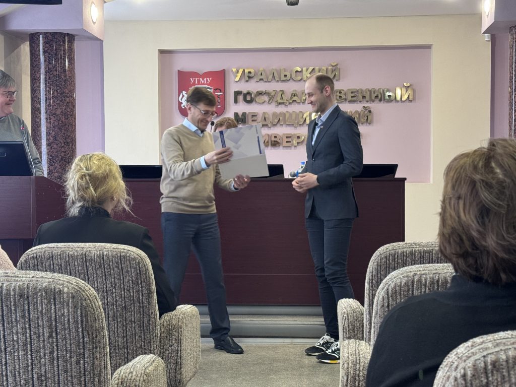 Диплом кандидата медицинских наук был вручен Александру Плотникову — ассистенту кафедры стоматологии детского возраста и ортодонтии.