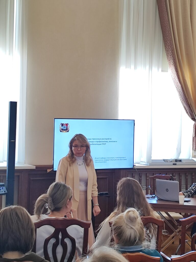 С 2023 года большую работу по созданию обучающей программы для специалистов и серии реабилитационных мероприятий для членов семей военнослужащих проводят сотрудники кафедры психиатрии, психотерапии и наркологии УГМУ: заведующая кафедрой доктор медицинских наук Алëна Сиденкова, профессор доктор психологических наук Людмила Баранская, доцент кандидат медицинских наук Ольга Есина.