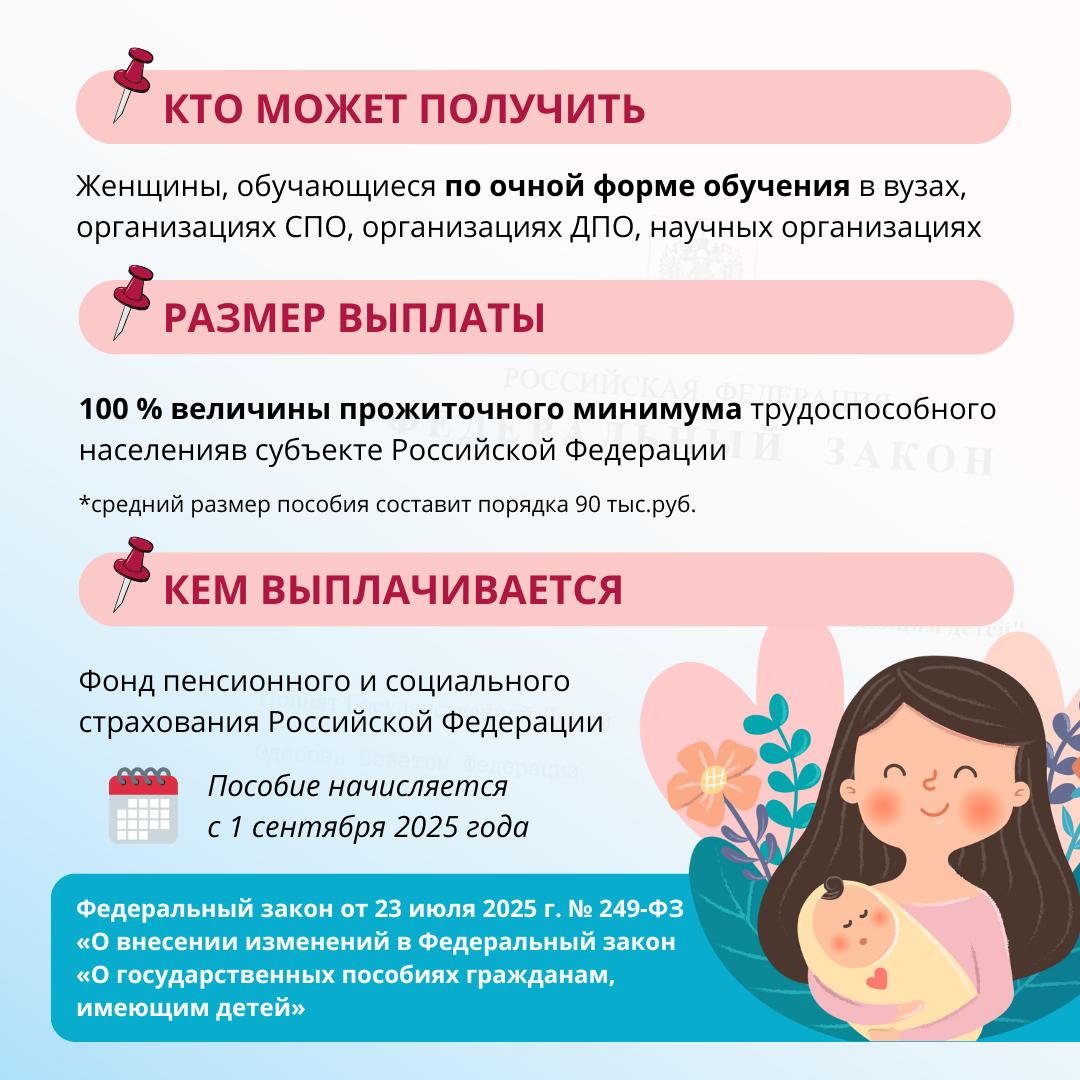 об изменении размера и порядка выплаты пособия по беременности и родам обучающимся с 1 сентября 2025 г.
