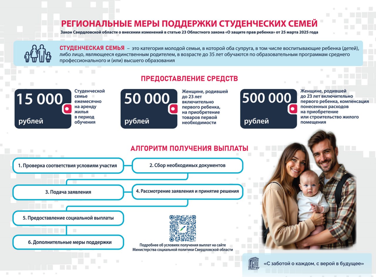 - единовременно, студенческой семье при рождении ребенка/детей, дата рождения ребенка после 04.09.2025 года, одна выплата на семью