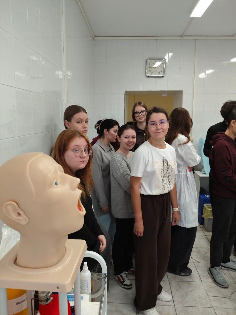 Особое внимание привлек макет машины скорой медицинской помощи, позволяющий воспроизводить реальные условия выезда на вызов. Игорь Геннадьевич продемонстрировал технику внутримышечных и подкожных инъекций, а также приемы сердечно-легочной реанимации. Учащиеся смогли лично попробовать выполнить необходимые действия, почувствовав ответственность, с которой сопряжена медицинская профессия.